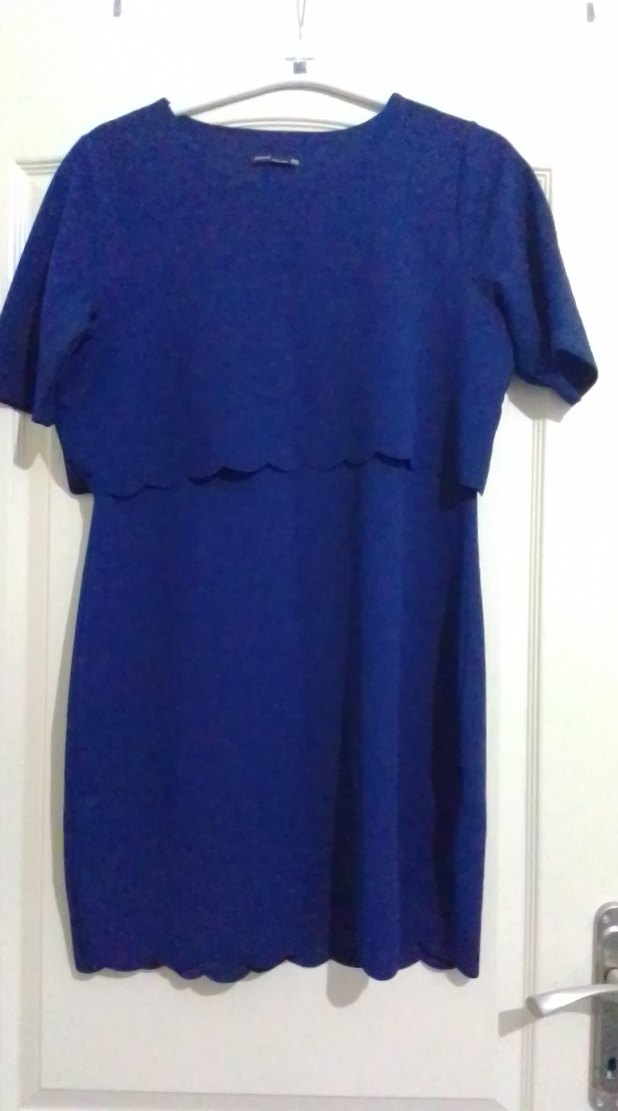 Koyu mavi renkte, kısa kollu, yuvarlak yakalı ve salaş kesime sahip hamile elbisesidir. Alt ve üst kısımda fırfır detayı vardır, yumuşak ve sıcak kumaştan üretilmiştir, ofis kullanımı için uygundur.