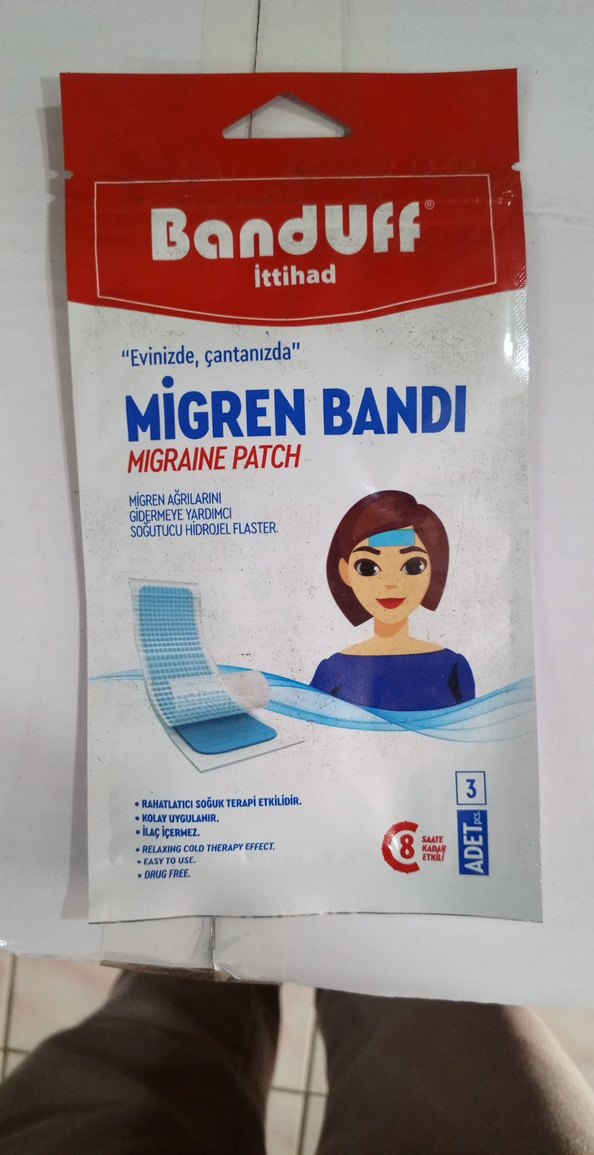 Mavi migren bandı, migren ağrılarını hafifletmeye yardımcı soğutucu hidrojel terapisi sunar. İlaç içermez ve kolay uygulanır, 8 saate kadar rahatlatıcı soğuk terapi sağlar. ❄️