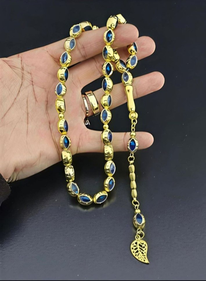 Gold kafesli, mavi mineli. Ağar malzeme, diğer metal tesbihlerle karıştırmayın lütfen! Elinize aldığınızda o tokluğu hissedeceksiniz (garanti) günlük kullanım için ideal, evladiyelik, size yeni yılda şans getirecek, nazardan koruyacak (Allah' ın izniyle) eşinize babanıza sevdiklerinize en güzel hediyelerden bir tanesi, hediyelik ahşap kutulu olarak gönderim yapılacaktır.. Sınıfının zirvesi bir tesbih!! Sayılı adette kaldı en çok ve en hızlı satılan tesbihlerdendir.. Bu fiyata kaçırmayın dostlar.. hızlı kargo avantajıyla.