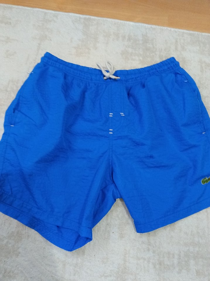 Canlı mavi renkte, ve kısa boyuyla salaş kesim erkek deniz şortu, plaj ve sokak tarzına uygundur.