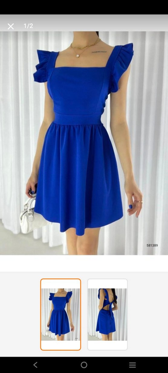 Mavi, kolsuz ve beli oturan mini elbise, sentetik kumaştan üretilmiştir. Günlük kullanıma uygundur.