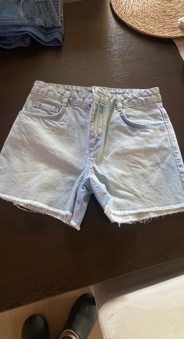 pastel mavi renkli, bol kesim kısa kot şort, günlük rahat 13 13 yasa uygundur.