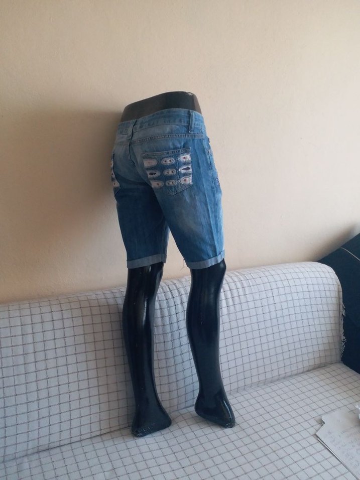 Mavi Mini Kot ŞortBAYAN 42 BONCUK ISLI DÜŞÜK BEL DAR PAÇ