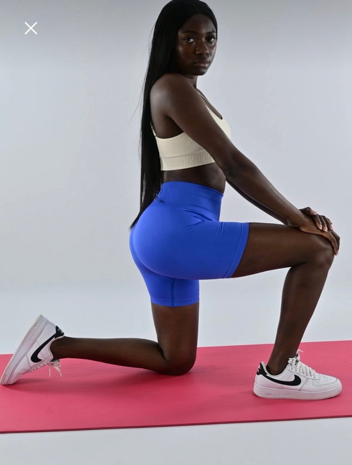 Mavi, kısa boy, vücuda oturan spor tayt, hafif kauçuk dokusuyla sokak stiline uygun, iddialı ve zahmetsiz şıklık sunar. ♀️