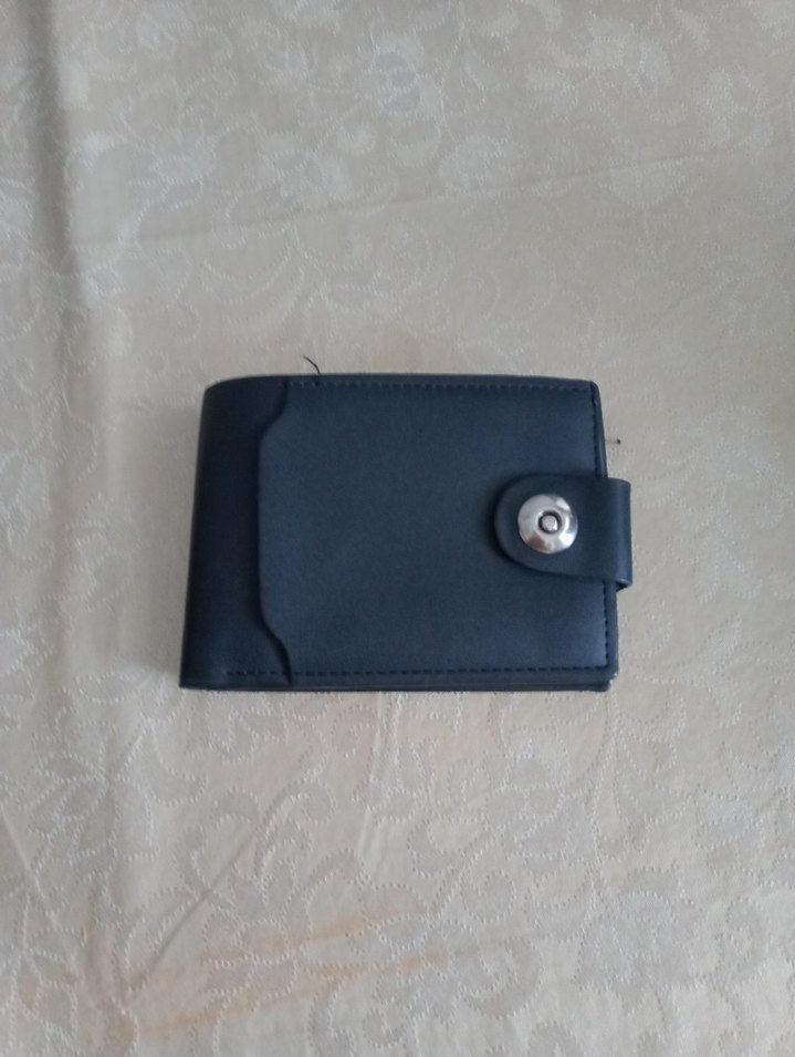 siyah renkte, düğmeli kapaklı minimalist erkek cüzdanı, kompakt ve kullanışlı bir tasarıma sahiptir.