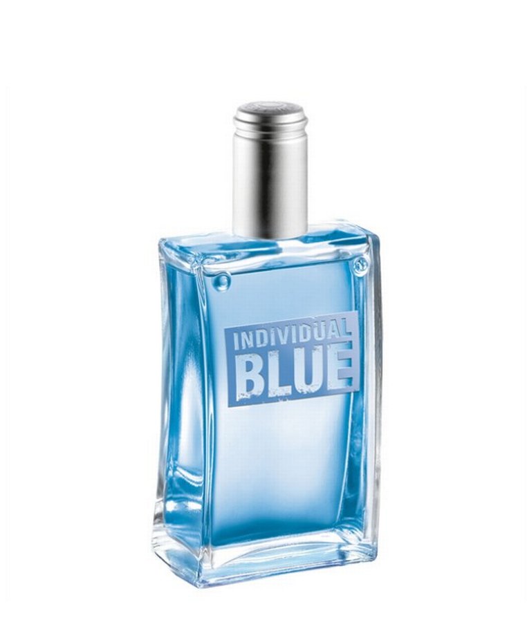 Renkli mavi kokulu, minimalist ve karşı kültür tarzında erkek parfümü. Şişe sade ve şık, üzerinde 'Individual Blue' yazıyor.