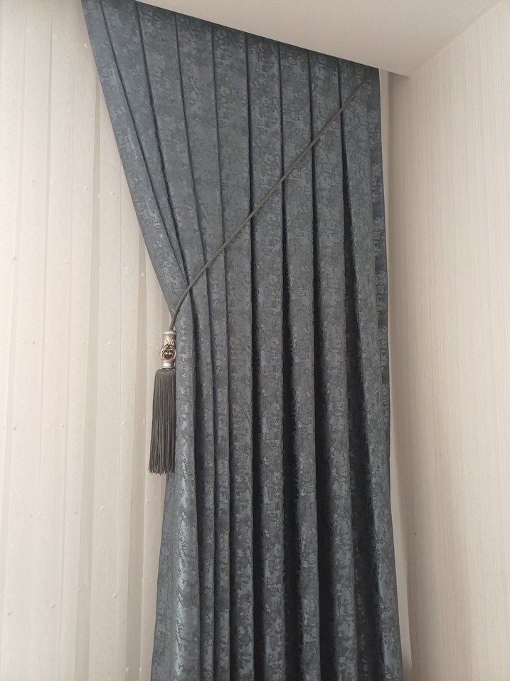 Düz dokulu, mavi renkte modern fon perde, püsküllü dekoratif bağlayıcı ile şık bir görünüm sunar. 4 büyük 4 küçük kırlentleri ile verilecektir ķirlentler bellona markadar