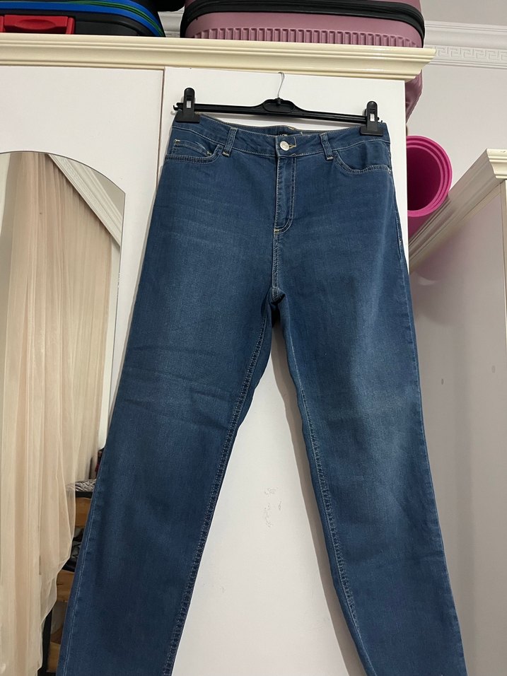 Mavi denim kumaştan, rahat kesim ve normal midi boyda, gündelik kullanıma uygun, desen içermeyen kadın kot pantolon. Normcore tarzıyla sade ve şık görünüm sunar. Sıfır ürün etiketsiz