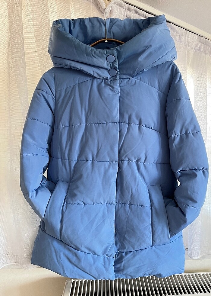 Ürün max. 4 defa giyildi. İçi elyaf. Kalçayı kapatıyor. Xs- small uyumlu. Makinada yıkanabilir. Kapişonlu.