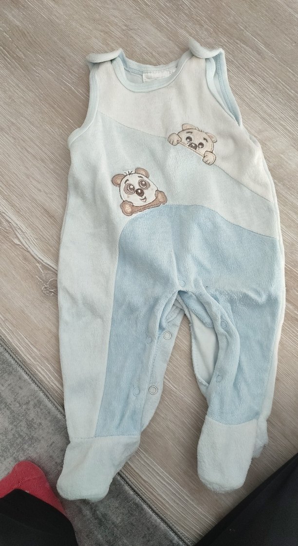 Pastel mavi renkte, nakışlı hayvan desenli, kolsuz bebek erkek tulumu. Yumuşak ve sıcak kumaştan, düğmeli ve yuvarlak yaka detaylı. carter s kalitesinde Alman markası