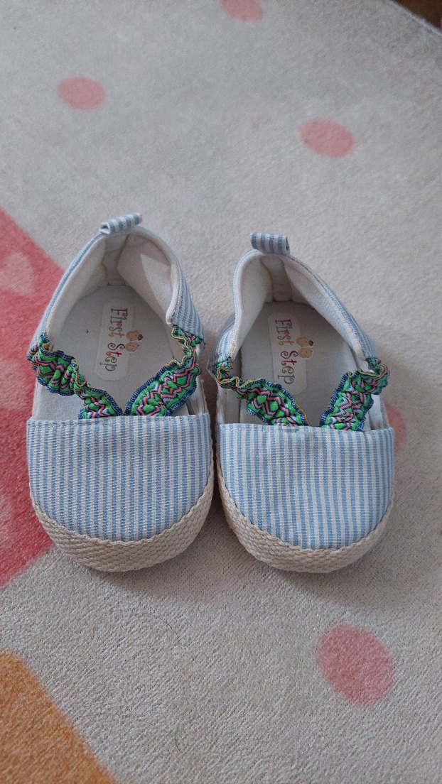 Mavi Nakışlı Elastik Bantlı Bebek Ayakkabısı