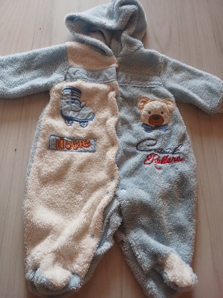 Pastel mavi renkte, yumuşak polar kumaştan yapılmış, nakış desenli ve örgü detaylı erkek bebek tulumu. Kapüşonlu ve tam koruma sağlar. ❄️
