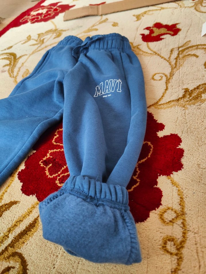 Yumuşak ve sıcak kumaştan, bol kesim mavi çocuk eşofman altı sıfır kullanılmamış 2/3 yaş