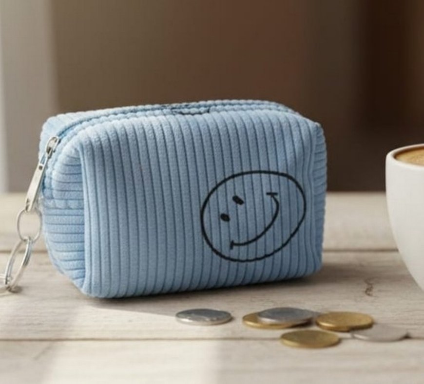 Mavi renkte, yumuşak dokulu, pileli ve nakışlı gülümseyen yüz detaylı çantası, günlük kullanıma uygundur.