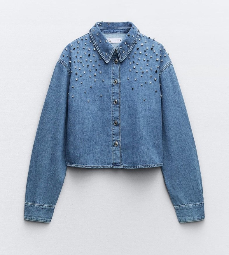 Mavi kot ceket, uzun kollu ve yakalıdır. Düğmeli ve bol kesimdir. taş detaylarıyla şık bir sokak stili sunar. ✨
