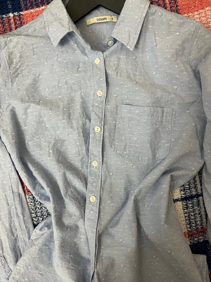 Açık mavi pamuklu gömlek, uzun kollu ve düğmeli. Nakış detayları ve yakalı tasarımıyla rahat günlük şehir stili için uygundur. %100 pamuk ürün açık mavidir bebek mavisine benziyor.