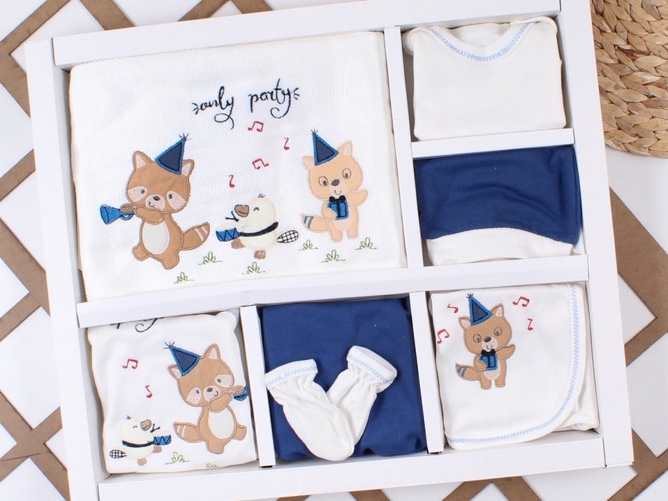 Mavi Nakışlı Pamuk Bebek Uyku Seti