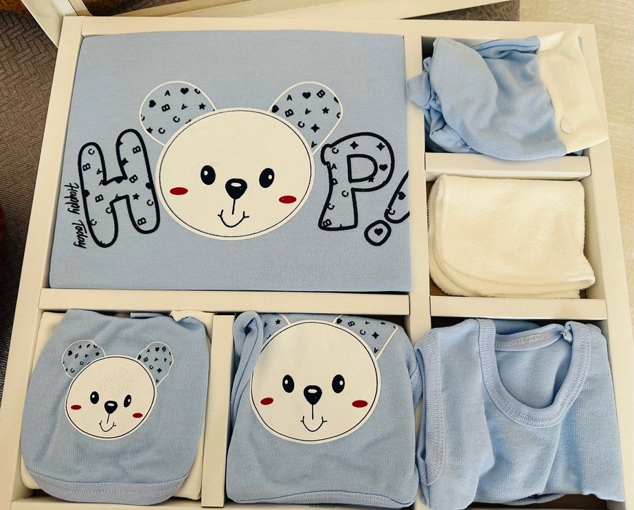 Pastel mavi renkte, pamuklu ve nakışlı ayıcık desenli bebek uyku seti. Rahat bir uyku ortamı için çoklu parçalar içerir, 10 parça şeklindedir. Ürün hiç kullanılmadı tertemizdir, paketi sadece fotoğraf çekmek için açıldı…