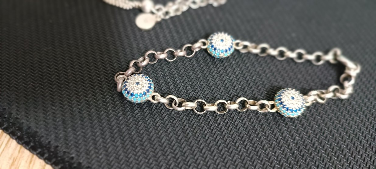 Mavi nazar boncuklu zincir Detaylı Kadın Bileklik