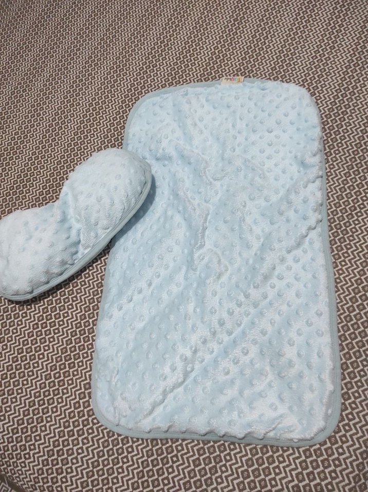 Mavi, yumuşak ve sıcak dokulu, kabartmalı noktalı bebek uyku minderi ve yastık seti, nazik konfor sağlar. ️ bebek alt değiştirme örtüsü