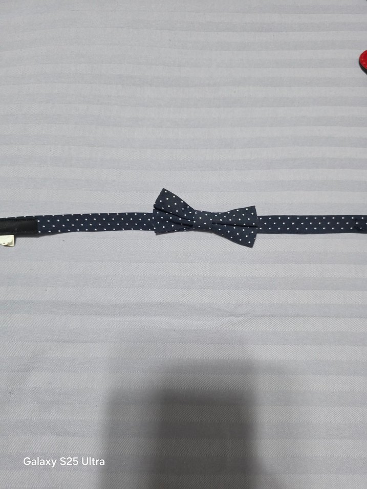 Çocuklar için küçük beyaz noktalarla mavi sentetik kumaş papyon. Sade ve sokak stili, desensiz tasarım. papyon ve askı 1 2 yas lcw