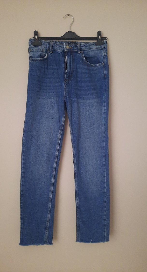 Mavi normal boy, düzenli kesim, desen içermeyen denim kadın jean, günlük rahat kullanıma uygun, zahmetsiz şıklık sunar. sadece arka cebinde ufak sökülmesi var