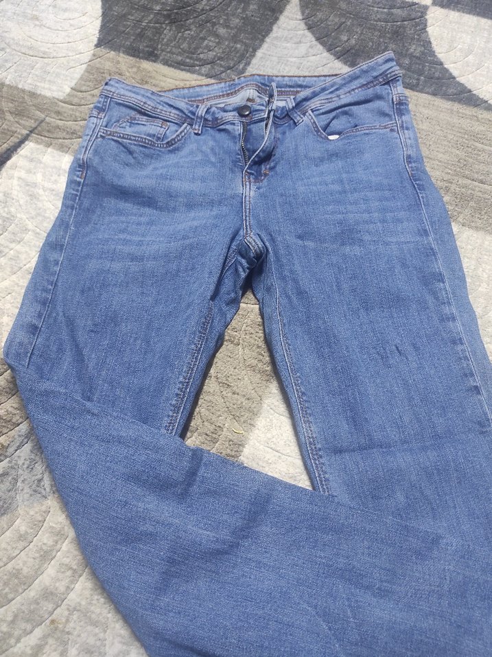 Mavi denim kumaştan, normal boy ve regular kesime sahip kadın kot pantolon. Desensiz ve günlük kullanıma uygun rahat şıklık sunar.