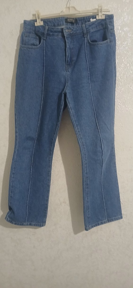 Mavi renkte, normal kesim ve midi boyda, fermuarlı detaylara sahip kadın denim pantolon. Günlük rahat kullanıma uygun sade tasarım.