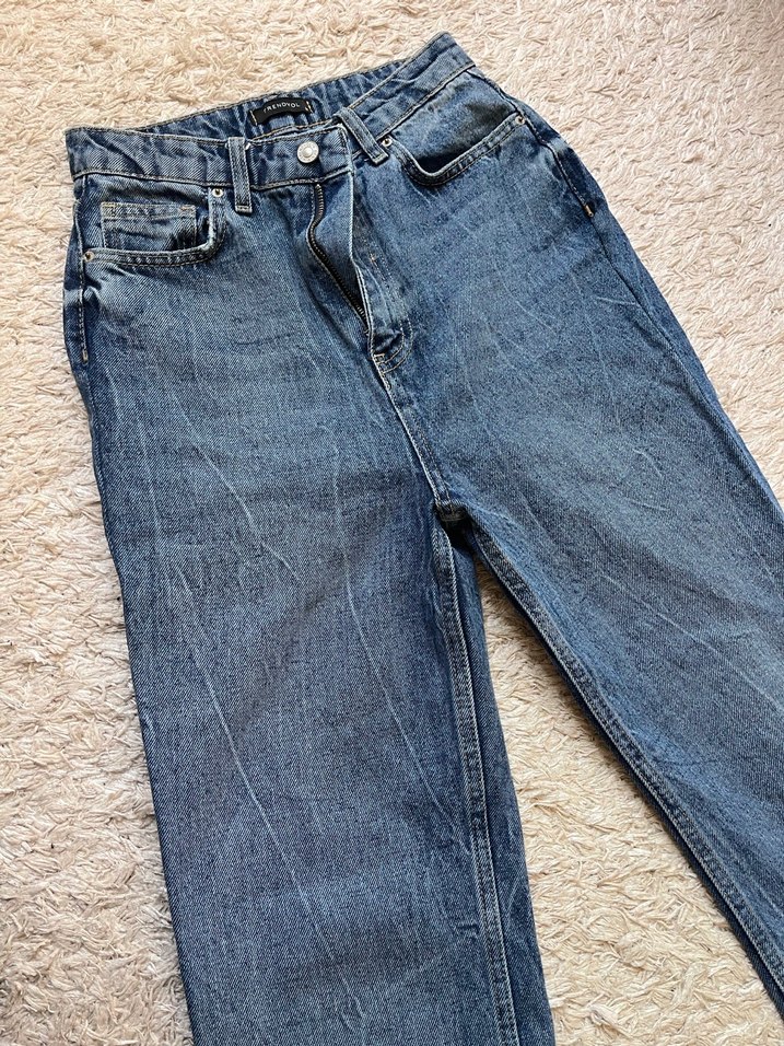 Mavi kot kumaştan, normal kesim kadın kot pantolon. Alt kısmında yırtmaç detayı bulunur, günlük kullanıma uygundur. Hiç giyilmedi.
