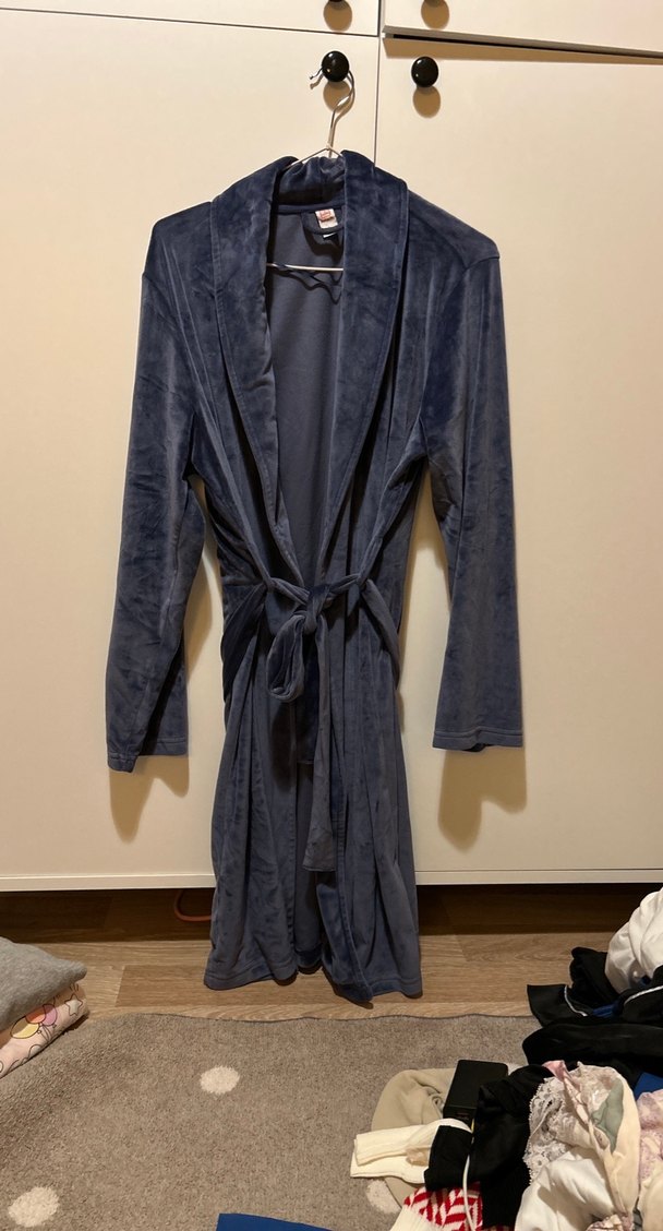 Mavi Normcore Kadife sabahlık