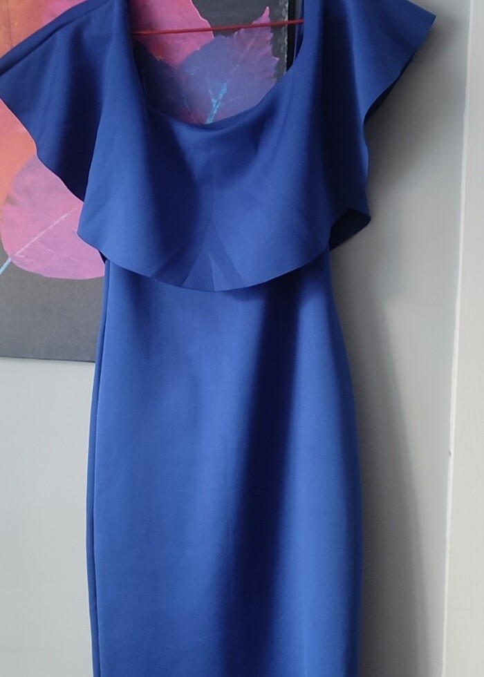 Gayet güzel ve şık bir duruşu vardır.omuzlari açık modeldir esnek bir polyester kumaş a sahiptir ütü istemez . Hiçbir sorunu ve defosu yoktur. ölçüleri eni 37 boyu 89 cmdir s-m bedene uygundur.yer Ankara