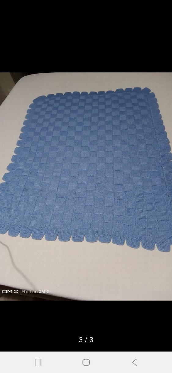 Mavi renkli, kare desenli örgü battaniye . az kullanılmıştır temizdir