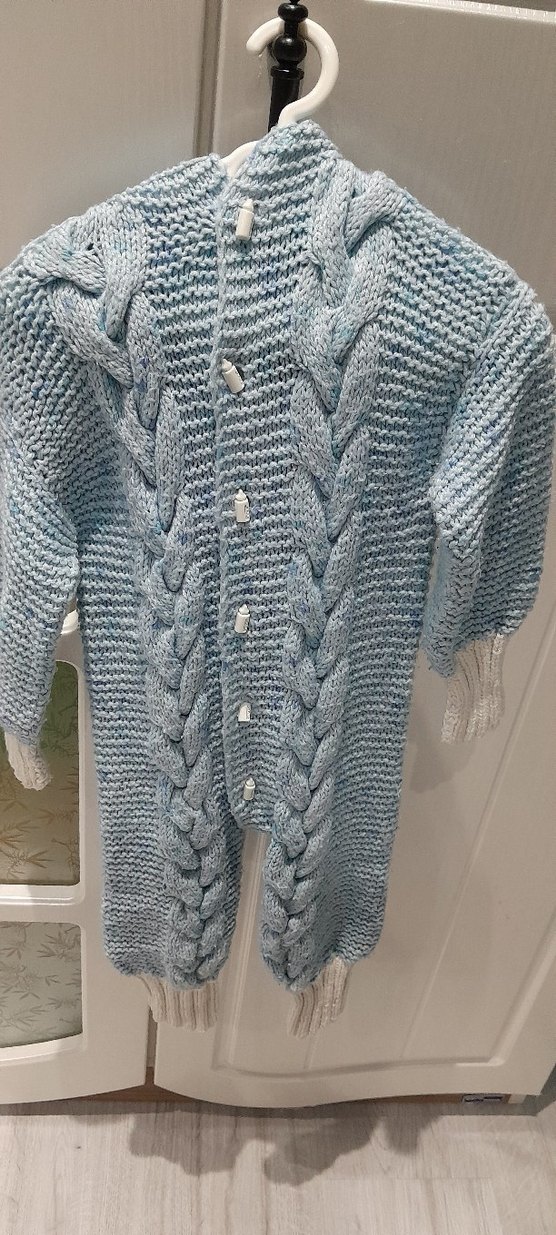 mavi örgü bebek tulumu, bohem tarzda örgü desenli ve düğmeli, sıcaklık ve konfor sağlar. el örgüsü ❄️