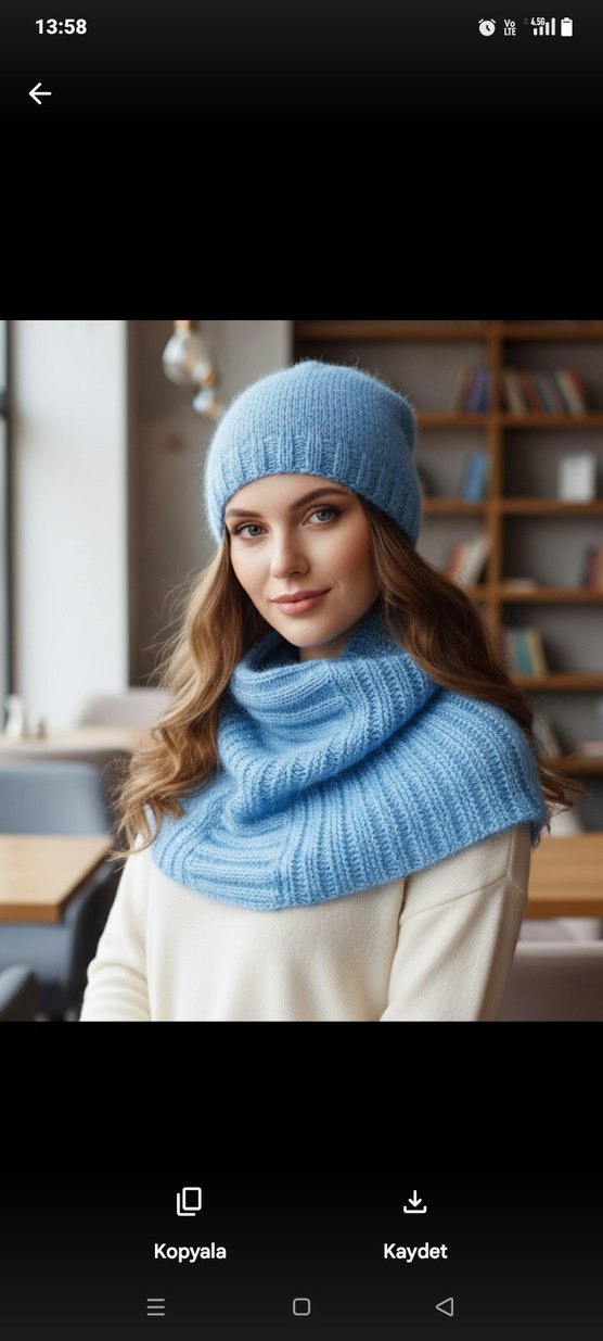 Mavi Örgü Bere ve Boyunluk Seti 2 li fiyat parlak simli