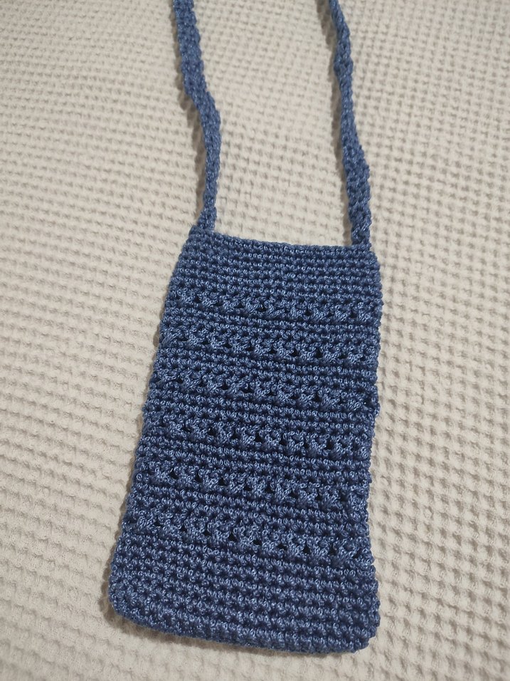 Mavi renkli, örgü dokulu çapraz çanta bohem tarzıyla yumuşak ve dokulu bir görünüme sahiptir. Temel eşyalar için şık ve sade bir tercih sunar.