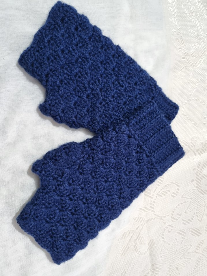 Mavi renkli, örgü dokulu, bohem tarzda kadın eldivenleri, sıcak tutar ve renk katar.