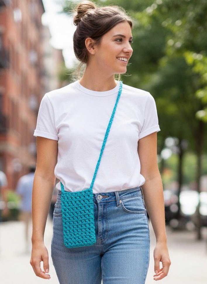 Mavi Örgü Çapraz Çanta