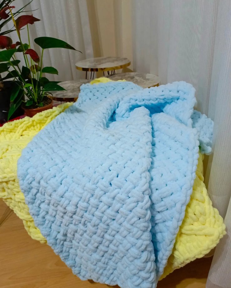 Mavi Örgü Çocuk Battaniyesi