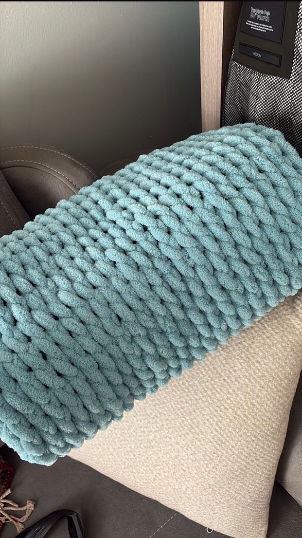 Pastel mavi renkte, yumuşak örgü çocuk battaniyesi. Desensiz tasarımıyla sade ve rahat bir kullanım sunar. İstenilen renklerde yapılabilir