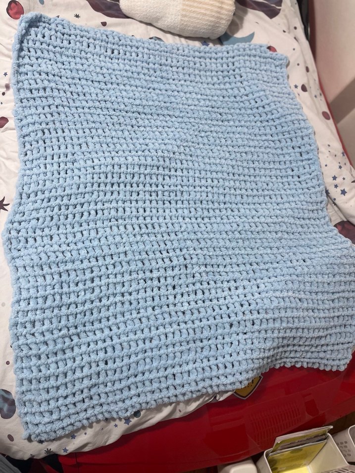 Yumuşak örgü kumaştan yapılmış, açık mavi renkte ve desensiz çocuk battaniyesidir. Hafif ısı ve konfor sağlar.