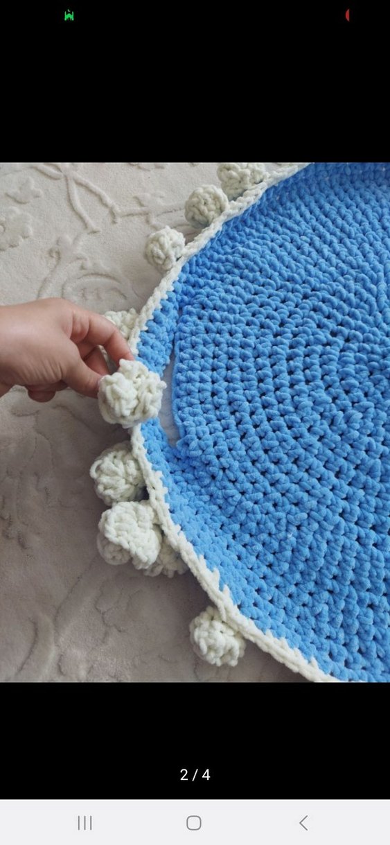 Pastel mavi renkli, yuvarlak örgü cocuk yelegi olarakta kulanılabilen beyaz örgü gül detaylı kenarlarıyla yumuşak ve rahat şık bir görünüm sunar el örgüsü.