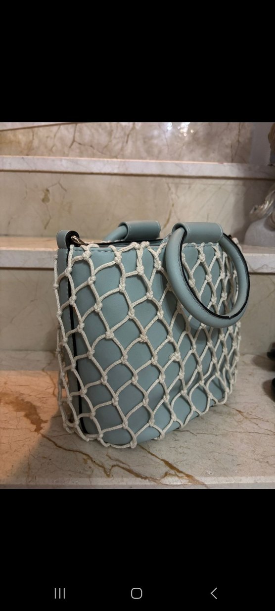 Mavi Örgü Detaylı Bohem Kadın Çantası