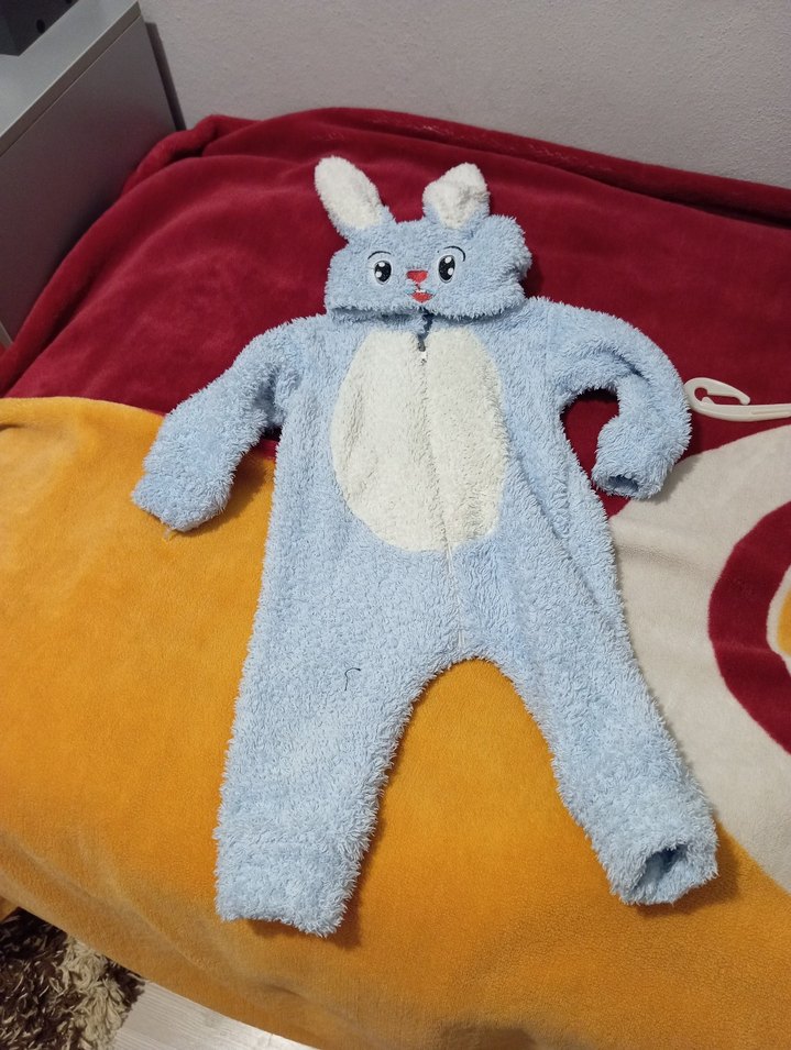 Pastel mavi renkli, örgü dokulu bebek tulumu. Kürk gibi yumuşak kumaşıyla bebeği sıcak tutar. Sevimli tavşan kapüşonlu.