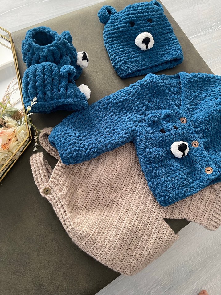 Tamamen el örgüsü Hem şık hem de sıcacık. Bebeklerin hassas cildi düşünülerek özenle örülmüştür. Ürün fiyatı yaşa göre belirlenmektedir. Ürünler sipariş üzerine hazırlanmaktadır.