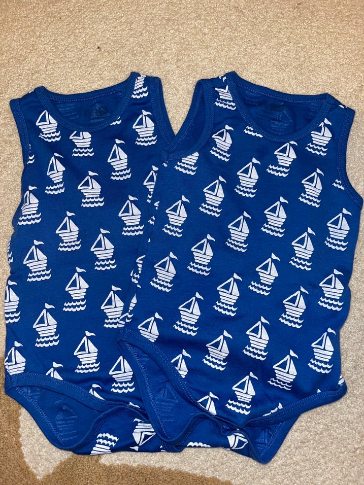 Mavi Örgü Erkek Bebek Kolsuz Body