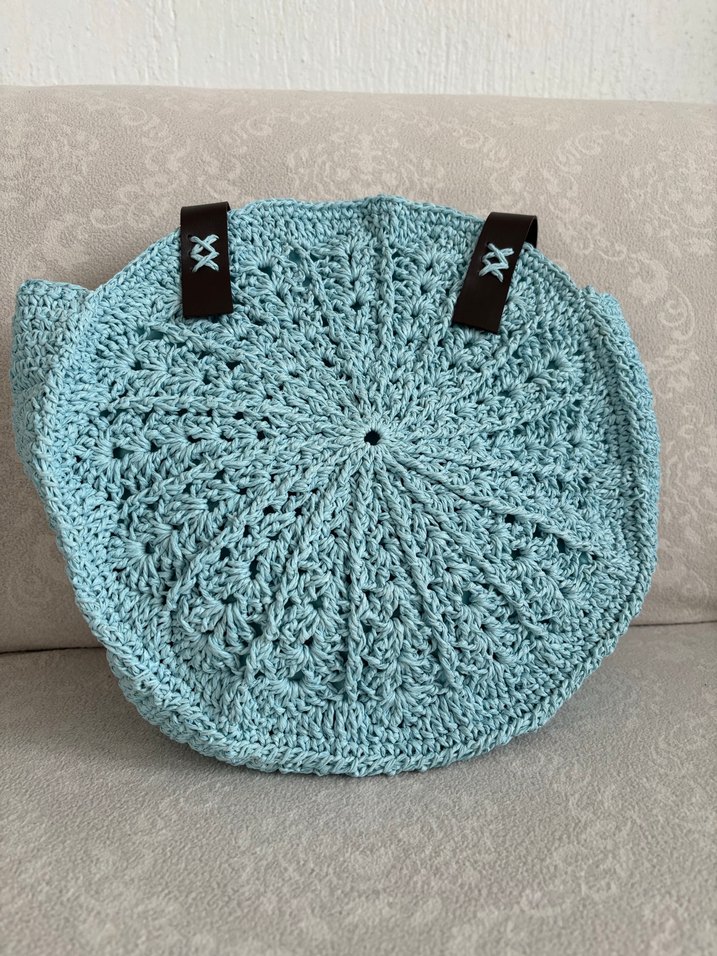 Sıfırdır. Açık Mavi renkli, örgü dokulu kadın çantasıdır. Bohem tarzıyla günlük kullanıma uygundur. Pastel tonu ve desensiz yapısıyla rahat bir görünüm sunar.