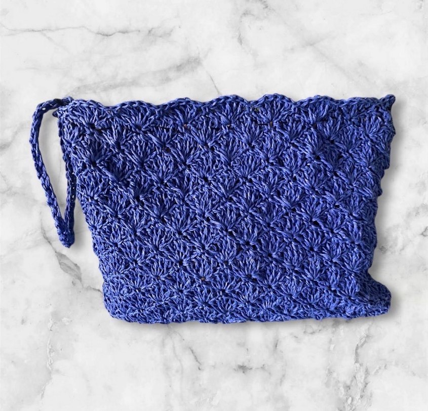 Mavi renginde, örgü dokulu kadın el çantasıdır. Rahat ve bohem tarzıyla günlük kullanıma uygundur.