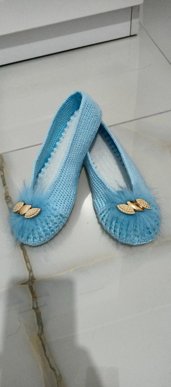 Mavi Örgü Kadın Ev Terliği