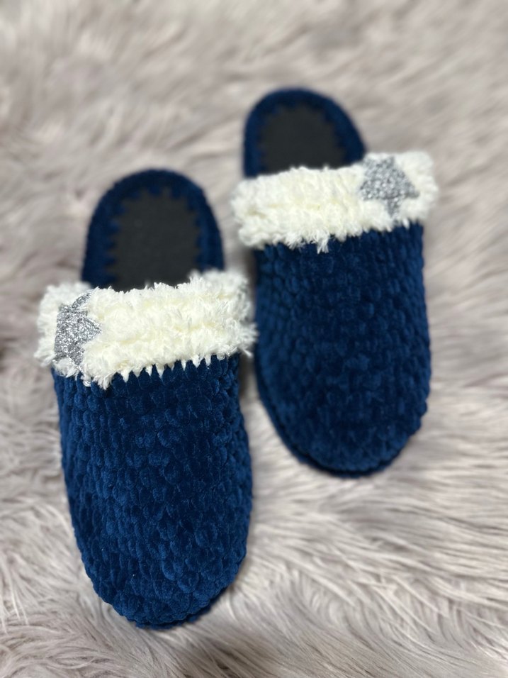 Mavi Örgü Kadın Ev Terliği