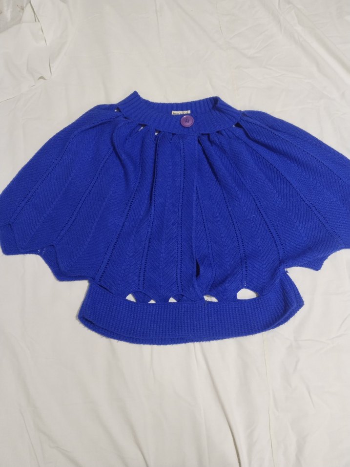 Mavi renkli, örgü dokulu, yuvarlak yakalı kısa kesim kadın kazak. Rahat kesimi ve renkli tasarımıyla günlük kullanıma uygundur. Tam göründüğü gibi canlı mavi renkte